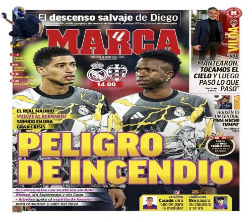 重返伯纳乌或迎球迷巨大嘘声,马卡头版:伯纳乌的“火灾隐患”